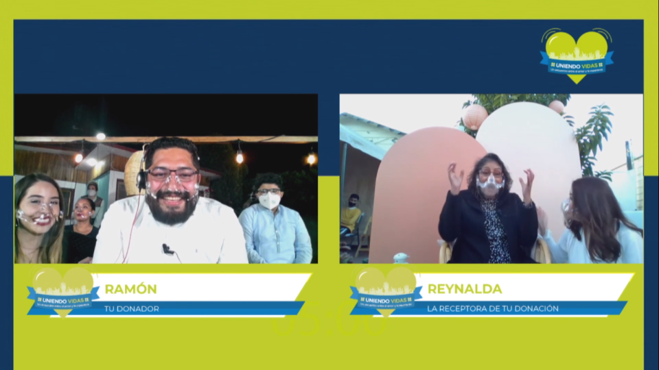 En 2019 los protagonistas fueron Natalia (paciente) y Walter (donador). Ahora tocó el turno a Reynalda y Ramón, quienes ayer se conocieron virtualmente a través de Uniendo Vidas, celebración que, debido al contexto de pandemia, tuvo que desarrollarse en formato virtual y no de manera presencial para seguridad de todos.